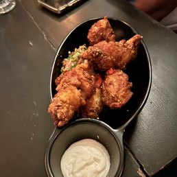 Sunday night and all the booths were filled. I was pleasantly surprised that this spot was open. They have food, drinks, and hookah. I ordered the coconut sugarcane mojito which was good. Sweet and coconutty. My friend and I split the wontons which our waitress graciously recommended. It seemed like most of the things on the menu were pretty good. We got the trio for the wontons. They are small ale tasty and come with a little sauce. The shrimp is the large shape, the crab is the little circular one, and the square one is the chicken. All delicious.. especially with the sauce. The ambiance in the spot is really cute and chic. Employees were helpful and friendly. The music was great. Reggae, dancehall, and soca hits playing the whole night. Like I said the bar was crowded and the booth seating was crowded but there wasn't anyone dancing so most people were enjoying their meals and drinks. It was a nice calm night with good music in the background. Looking for something local. I'd come back.