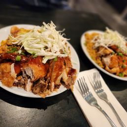 Party vibe inside especially during the summer when the outside area is open. The chicken fried rice is my go too, the general tso was way too spicy for me and the fried rice is a must! Parking is a hit or miss it's a busy area with buses going by constantly. To me they have the best Guyanese food in Queens!